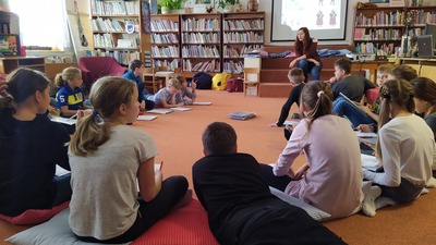 Nejprve do knihovny zavítala Sylva Francová, která je uznávanou českou fotografkou, výtvarnicí a také spisovatelkou. S dětmi si povídala o své knize Áďa spadla do kanálu, na které ukázala, co všechno stojí za tím, než taková knížka může vzniknout.