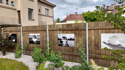 Na šesti velkoformátových deskách jsou vyobrazeny černobílé snímky pohledu na svět přes skleněnou kouli. Fotografie velmi pěkně doplňují nynější rozkvetlou zahradu. Zveme všechny návštěvníky knihovny k jejich zhlédnutí a Střední průmyslové škole Otty Wichtrleho z Velkého Poříčí děkujeme za jejich zprostředkování.